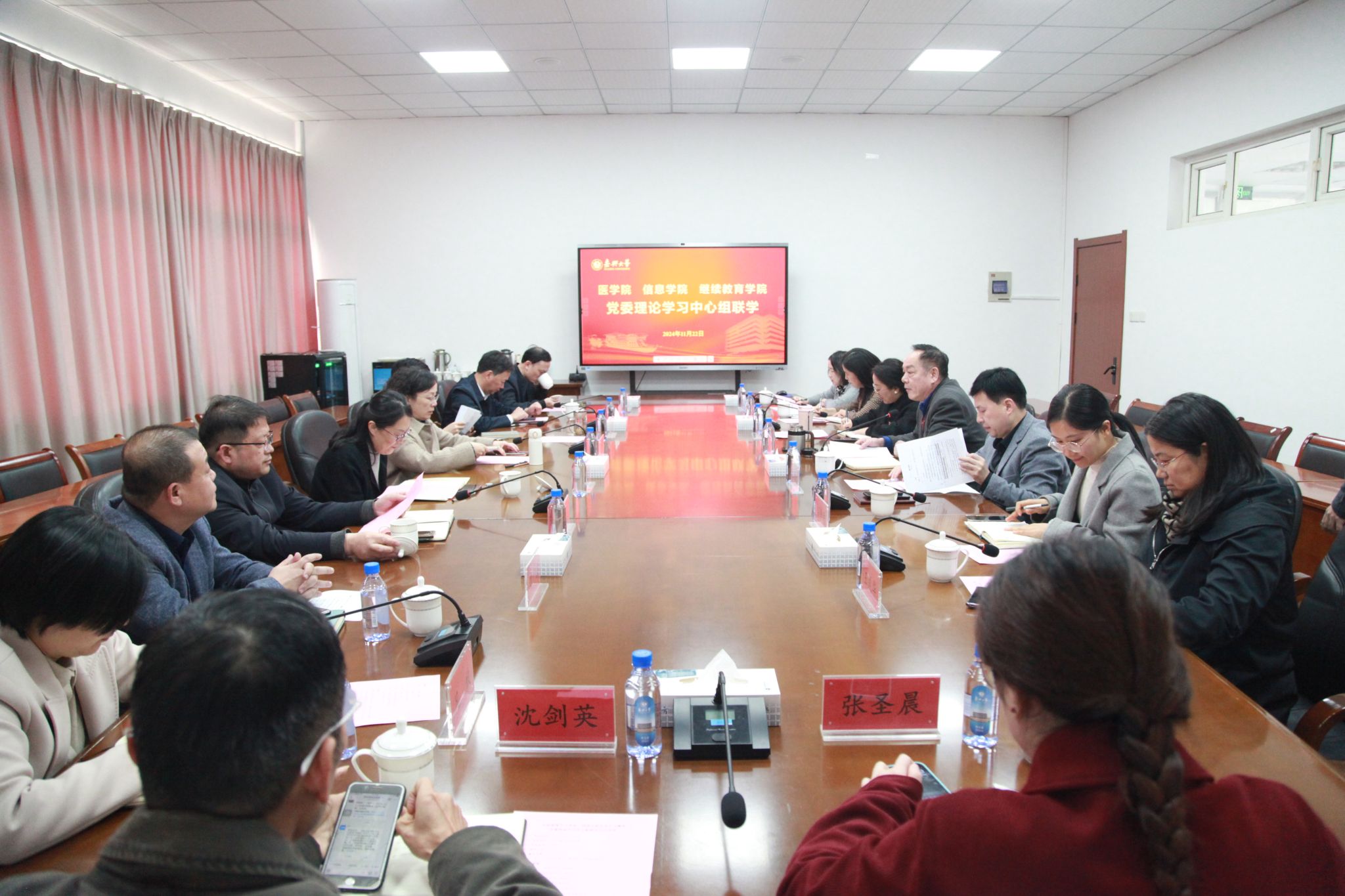 为巩固拓展党史学习教育成果,把学党史、用党史作为终身必修课,不断坚定历史自信、增强政治自觉,11月22日下午,金年会与医学院、继续教育学院在仁心楼426会议室开展党委理论中心组联学活动,全面系统学习党史。会议由医公司党委书记陈云飞主持,公司党委委员、副董事长(支持日常工作)张琦出席。
