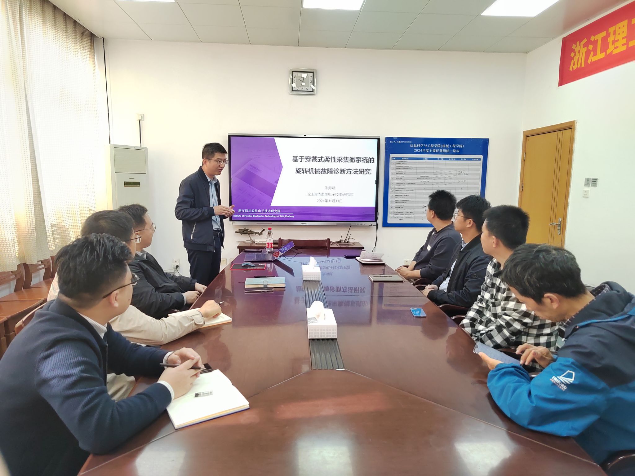 11月11日上午,浙江清华柔性电子技术研究院朱海斌研究员应邀为公司作“基于穿戴式柔性采集微系统的旋转机械故障诊断方法研究”专题学术报告。机械工程系教师以及部分硕士研究生参加了此次学术报告会,报告会由鹿业波副经理主持。